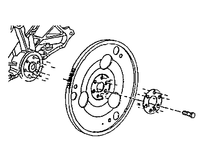 1. Apply thread locker to all of the flywheel bolts. Use GM P/N 12345382 or an equivalent.