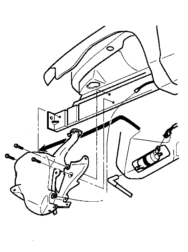 7. Remove the 3 screws and the washer solvent container from the vehicle.