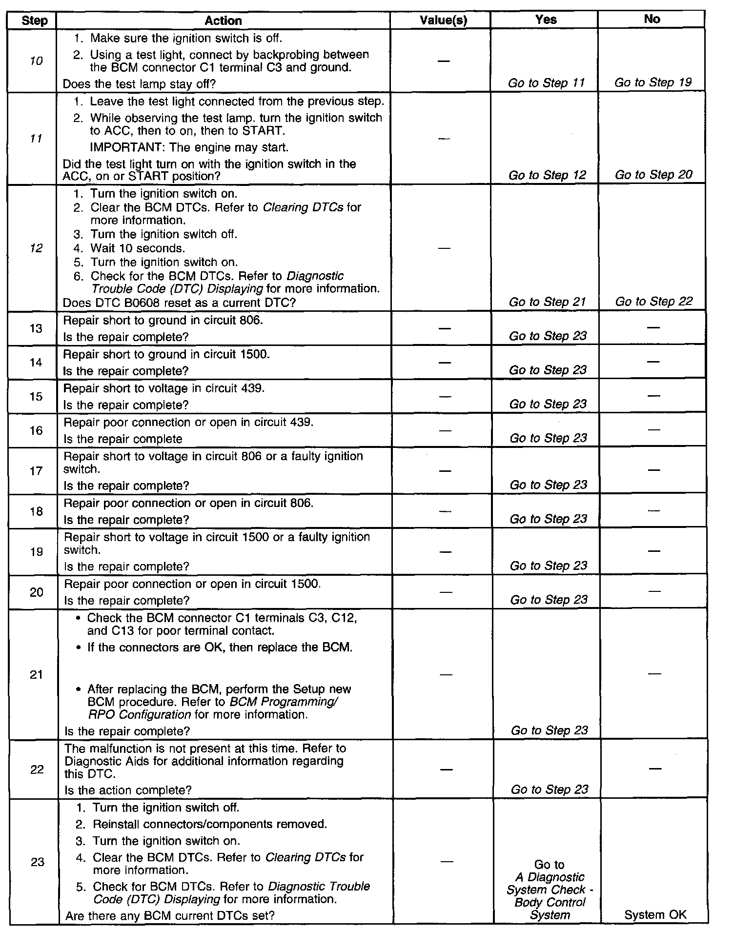^ The BCM no longer detects an open or short to B+ in circuits 439, 806, or 1500.