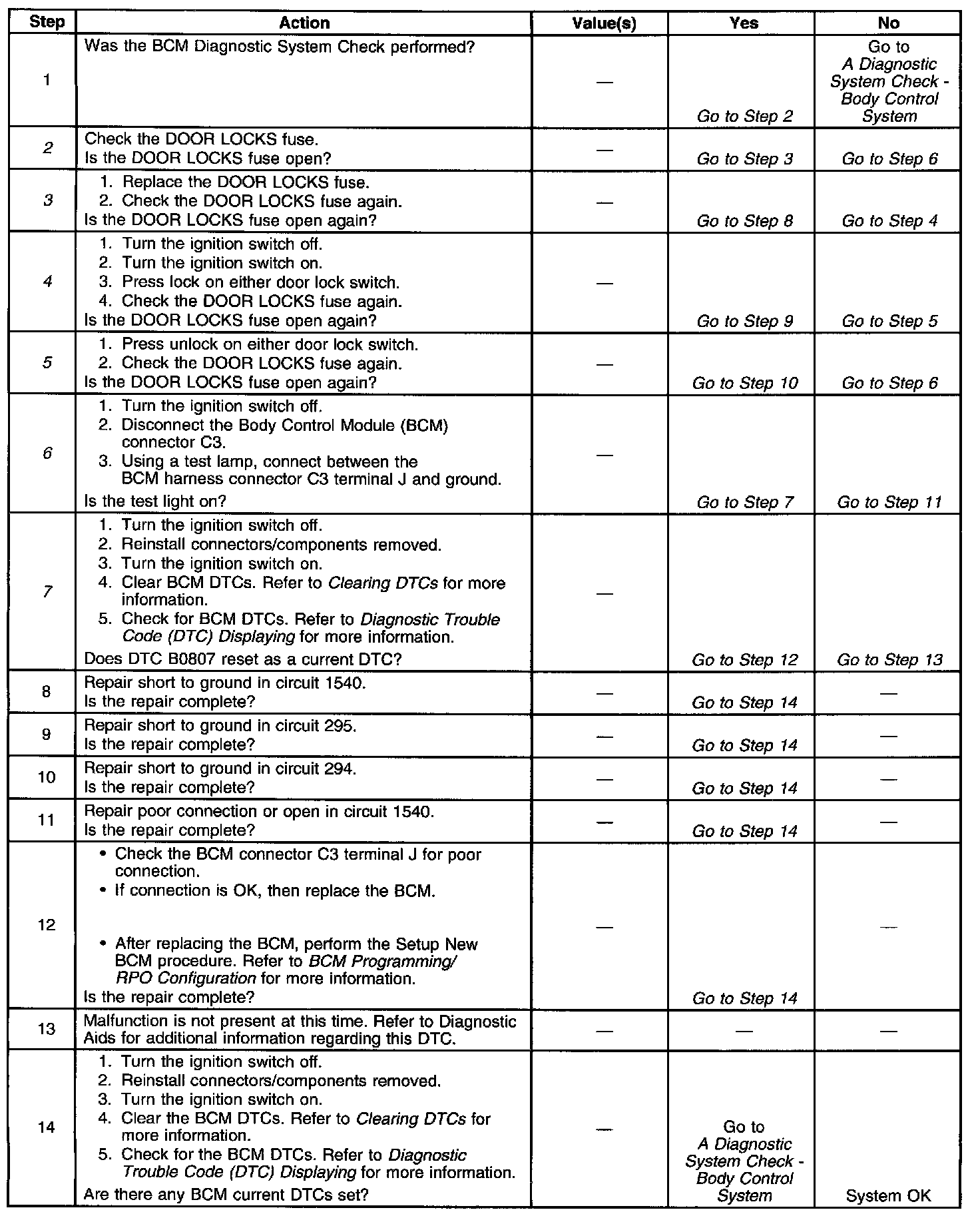 ^ DTC P1626 will set in the Powertrain Control Module (PCM) when the ignition switch is on with the Body Control Module (BCM) disconnected. When BCM diagnostics and repair are completed, refer to A Powertrain On Board Diagnostic (OBD) System Check for additional information on PCM related DTCs in Computers and Control Systems Testing.