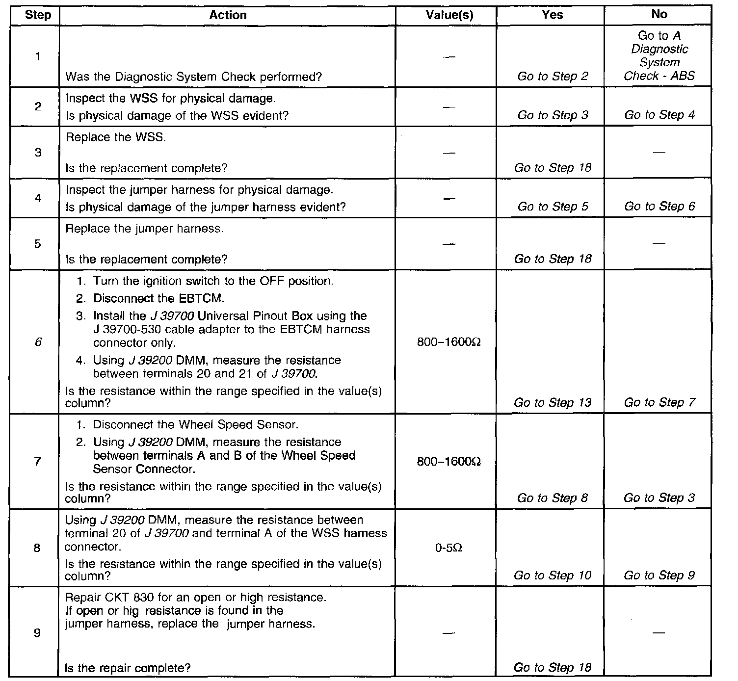 6. This step checks for an open in the WSS or WSS CKT.