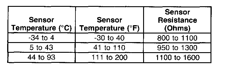 The following table contains resistance values for the front wheel speed sensors at varying sensor temperatures for use in diagnosis. The values are approximate and should be used as a guideline for diagnosis.