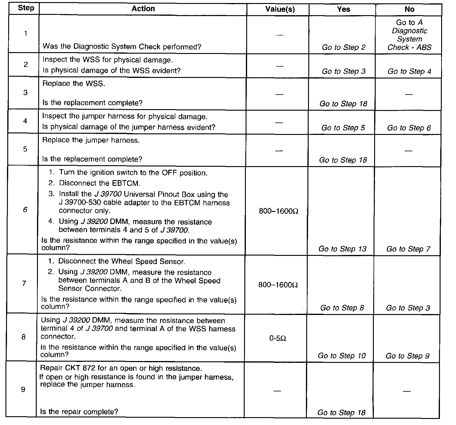 FRONT WHEEL SPEED SENSOR RESISTANCE