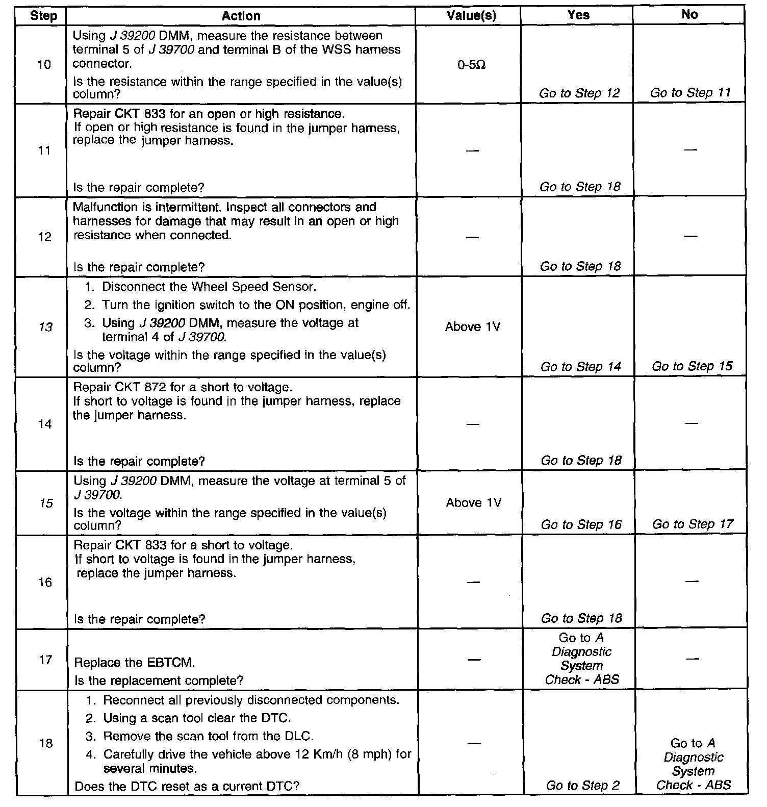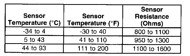 The following table contains resistance values for the front wheel speed sensors at varying sensor temperatures for use in diagnosis. The values are approximate and should be used as a guideline for diagnosis.