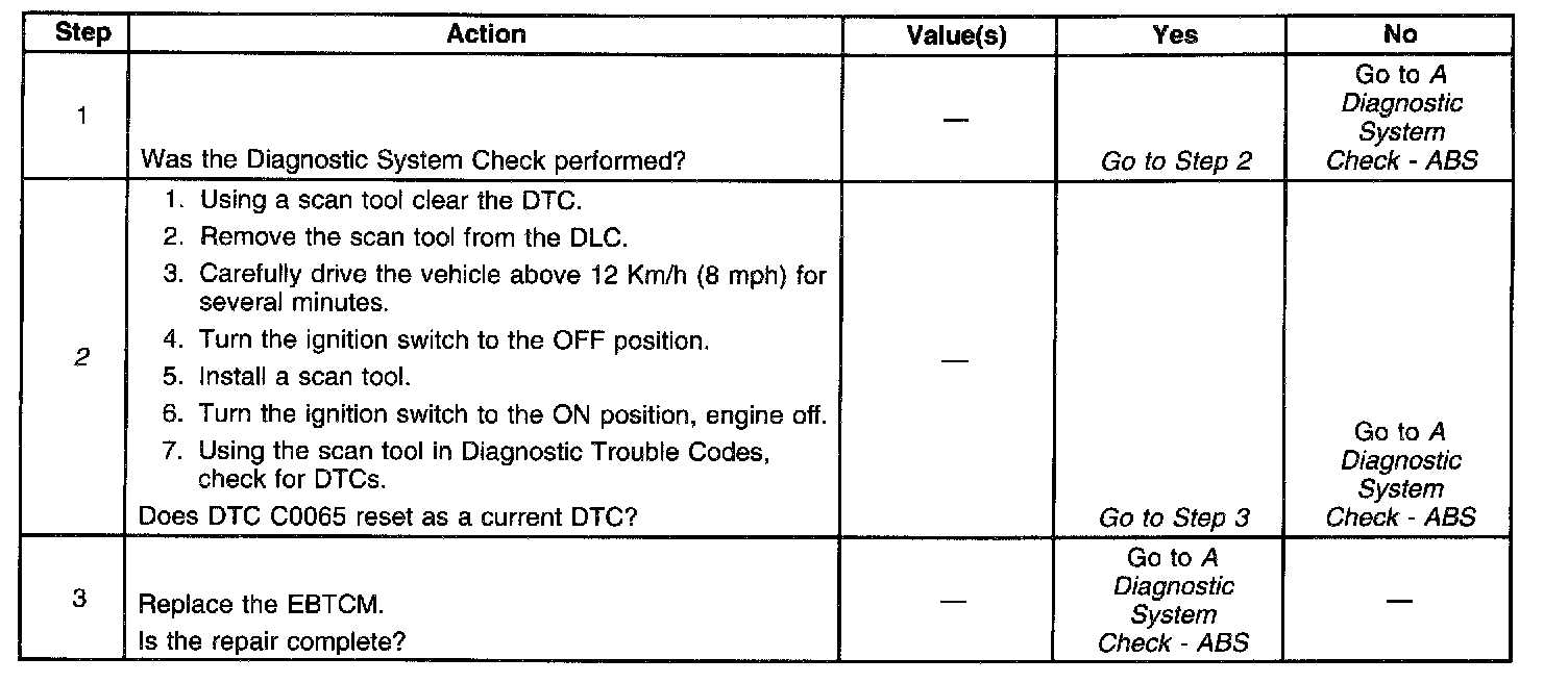 The solenoid valve circuit and the solenoid coil are internal to the EBTCM. No part of the solenoid circuit is diagnosable external to the EBTCM. The DTC sets when there is a malfunction in the solenoid circuit internal to the EBTCM only.