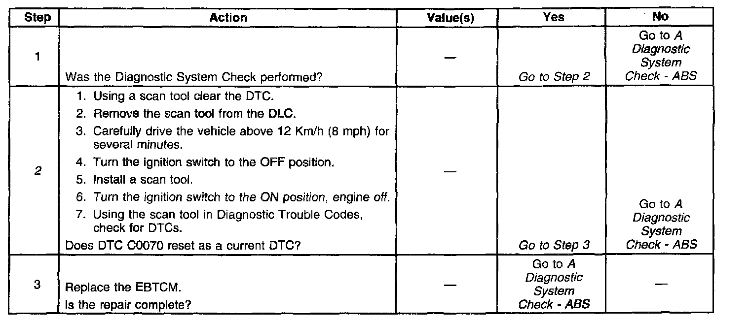 The solenoid valve circuit and the solenoid coil are internal to the EBTCM. No part of the solenoid circuit is diagnosable external to the EBTCM. The DTC sets when there is a malfunction in the solenoid circuit internal to the EBTCM only.