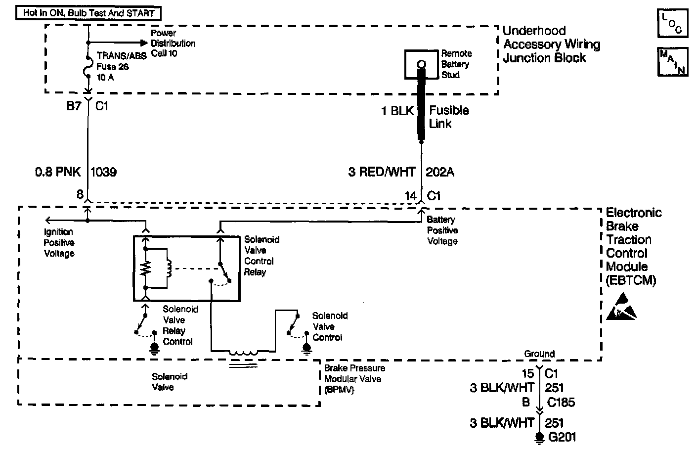 The inlet valve solenoid circuits are supplied with battery power when the ignition is in the ON position. The EBTCM controls the valve functions by grounding the circuit when necessary.