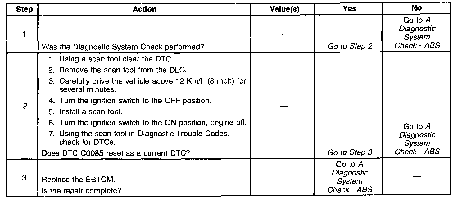 The solenoid valve circuit and the solenoid coil are internal to the EBTCM. No part of the solenoid circuit is diagnosable external to the EBTCM. The DTC sets when there is a malfunction in the solenoid circuit internal to the EBTCM only.