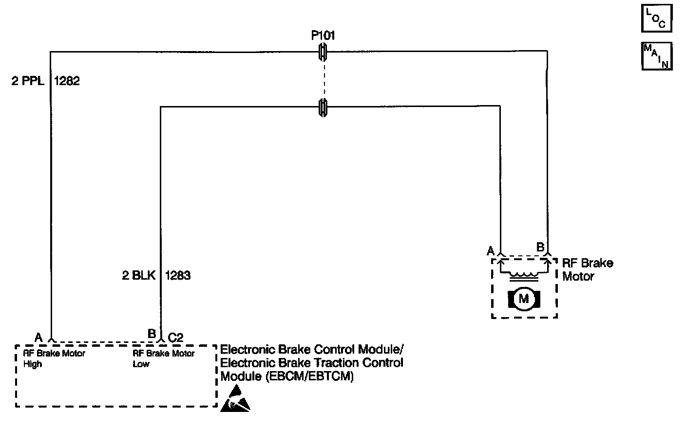A malfunction exists if the EBTCM detects an out of range voltage on either of the right front ABS motor circuits. The out of range voltage on either circuit indicates an open circuit exists.