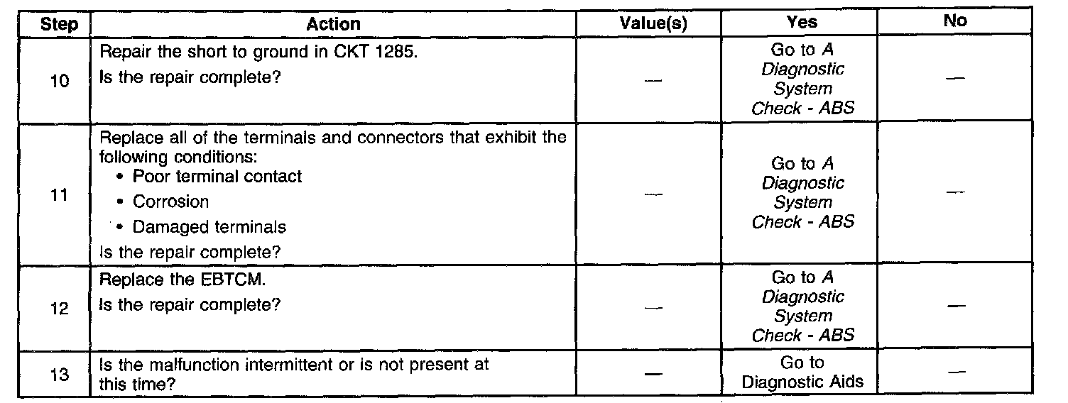 A malfunction exists if the EBTCM detects an out of range voltage on either of the rear ABS motor circuits. The out of range voltage on either circuit indicates an open circuit exists.