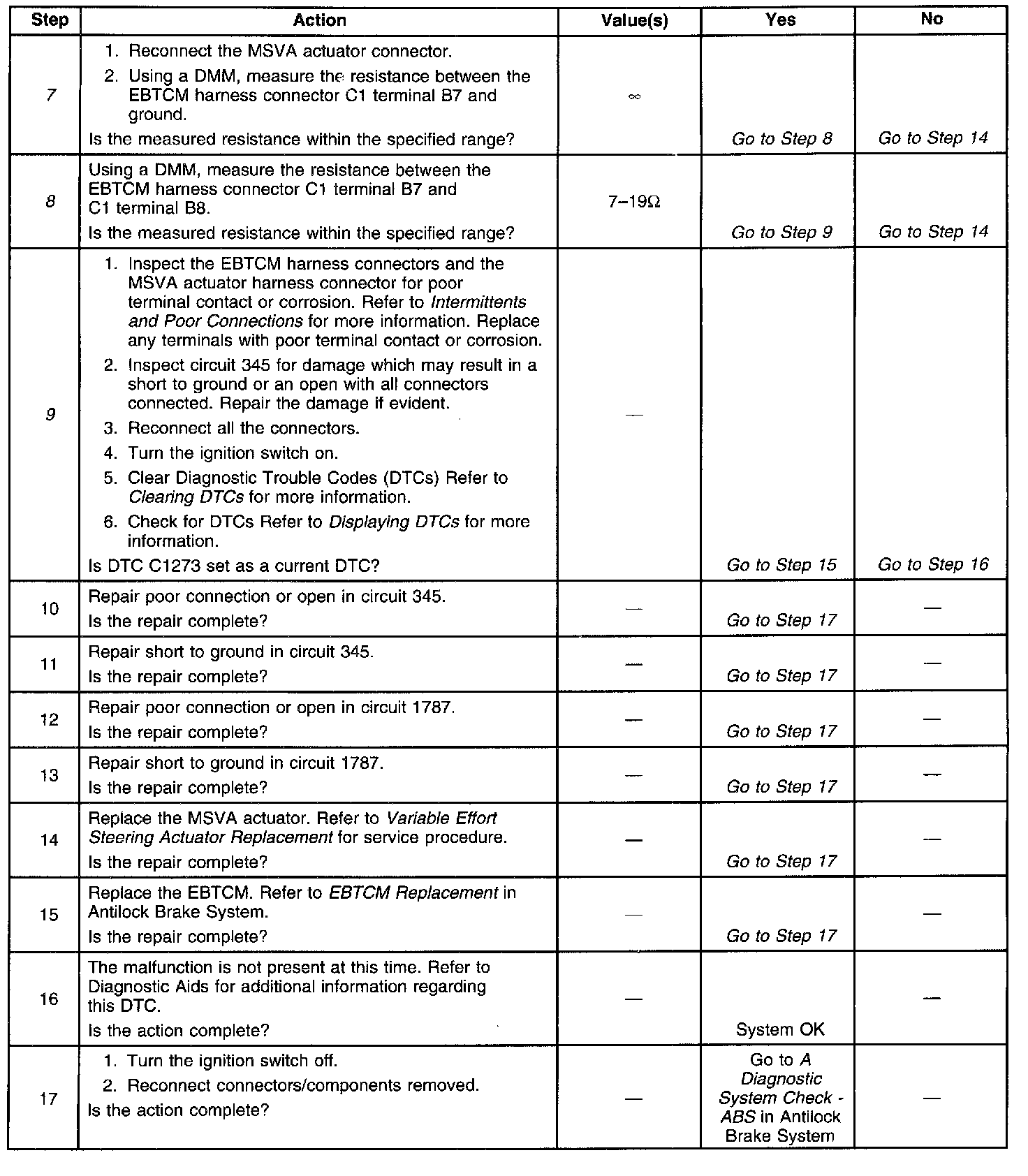 7. This step checks for a faulty MSVA actuator.