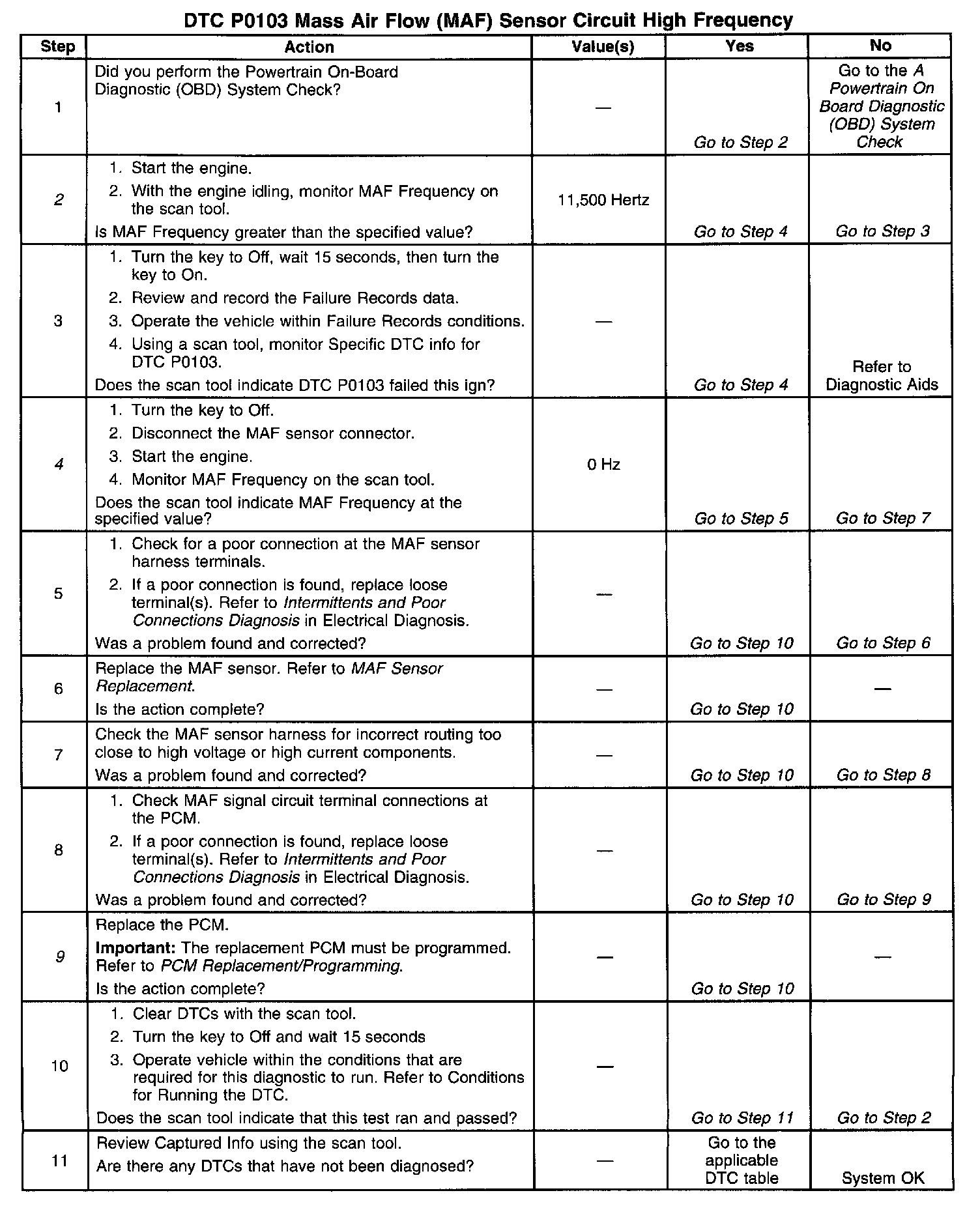 If DTC P0103 cannot be duplicated, the information included in the Fail Records data can be useful in determining vehicle mileage since the DTC was last set.