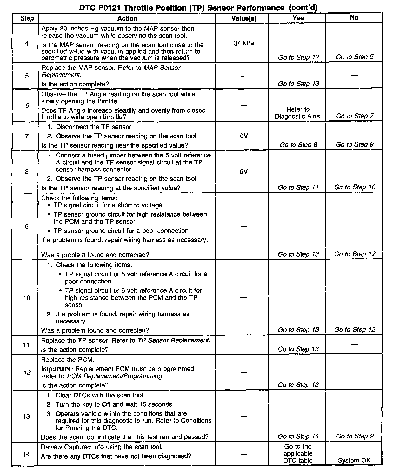 ^ Skewed MAP signal or malfunctioning MAP sensor An incorrect MAP signal may cause the PCM to incorrectly calculate the predicted TP sensor value during high engine load situations. Check for an unusually low MAP reading. This condition can cause DTC P0121 to be set.