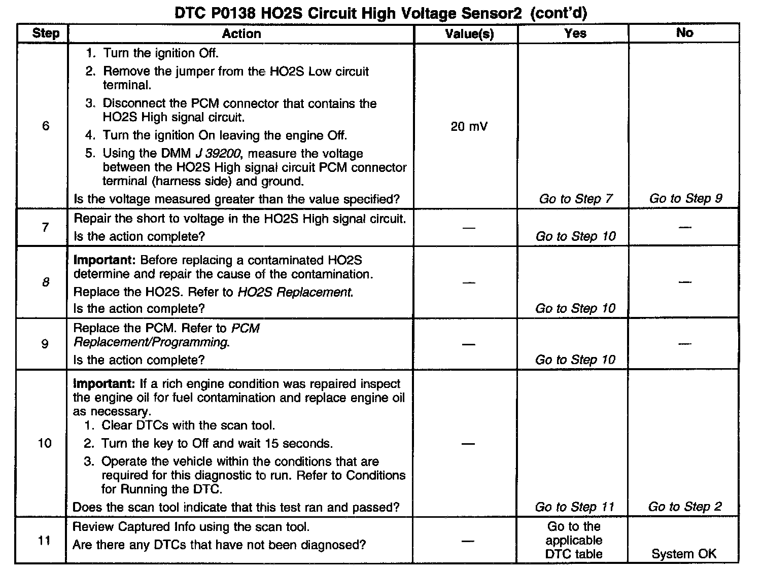 6. This step checks the HO2S High signal circuit for a short to voltage.