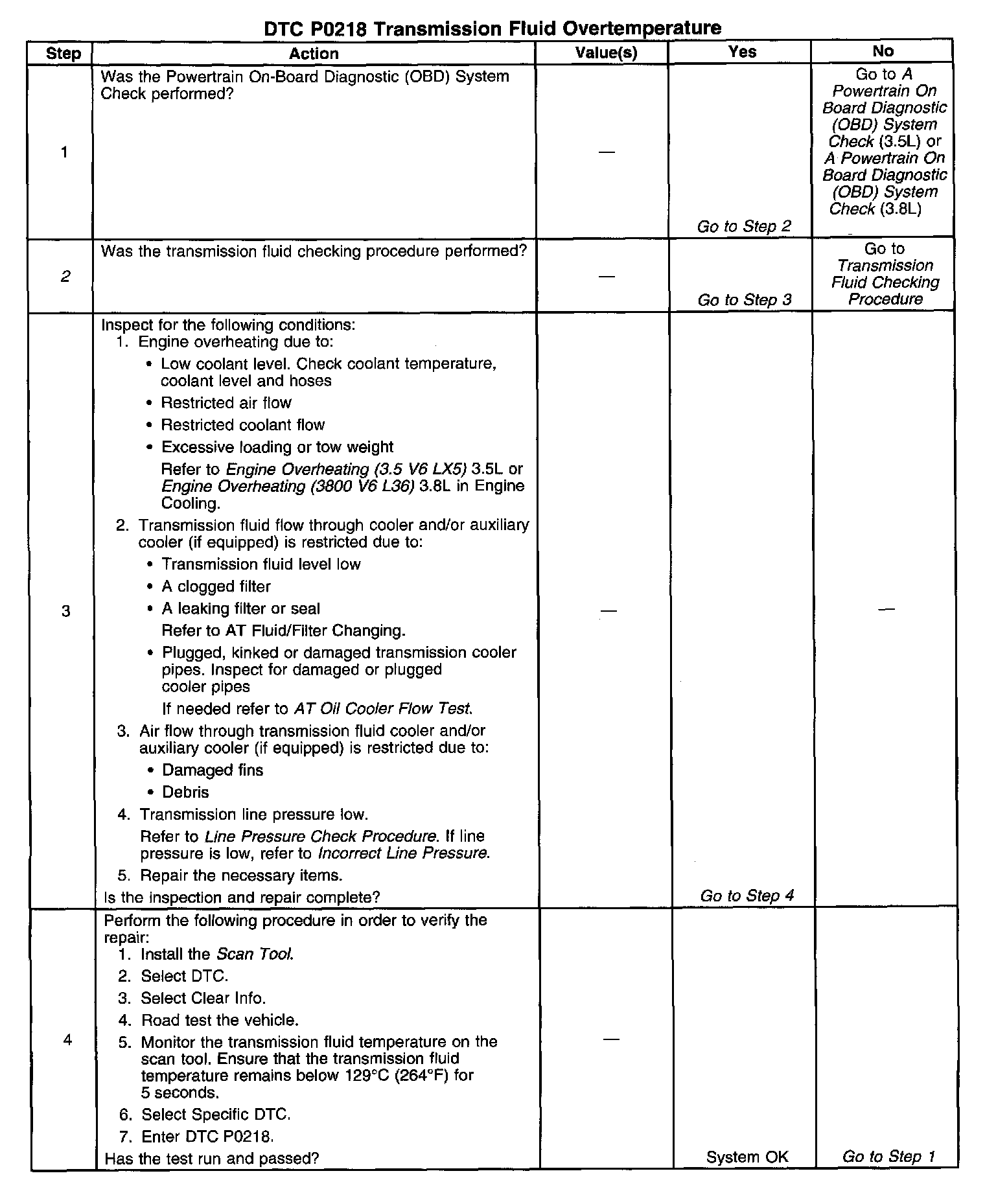 ^ The PCM stores DTC P0218 in PCM history.