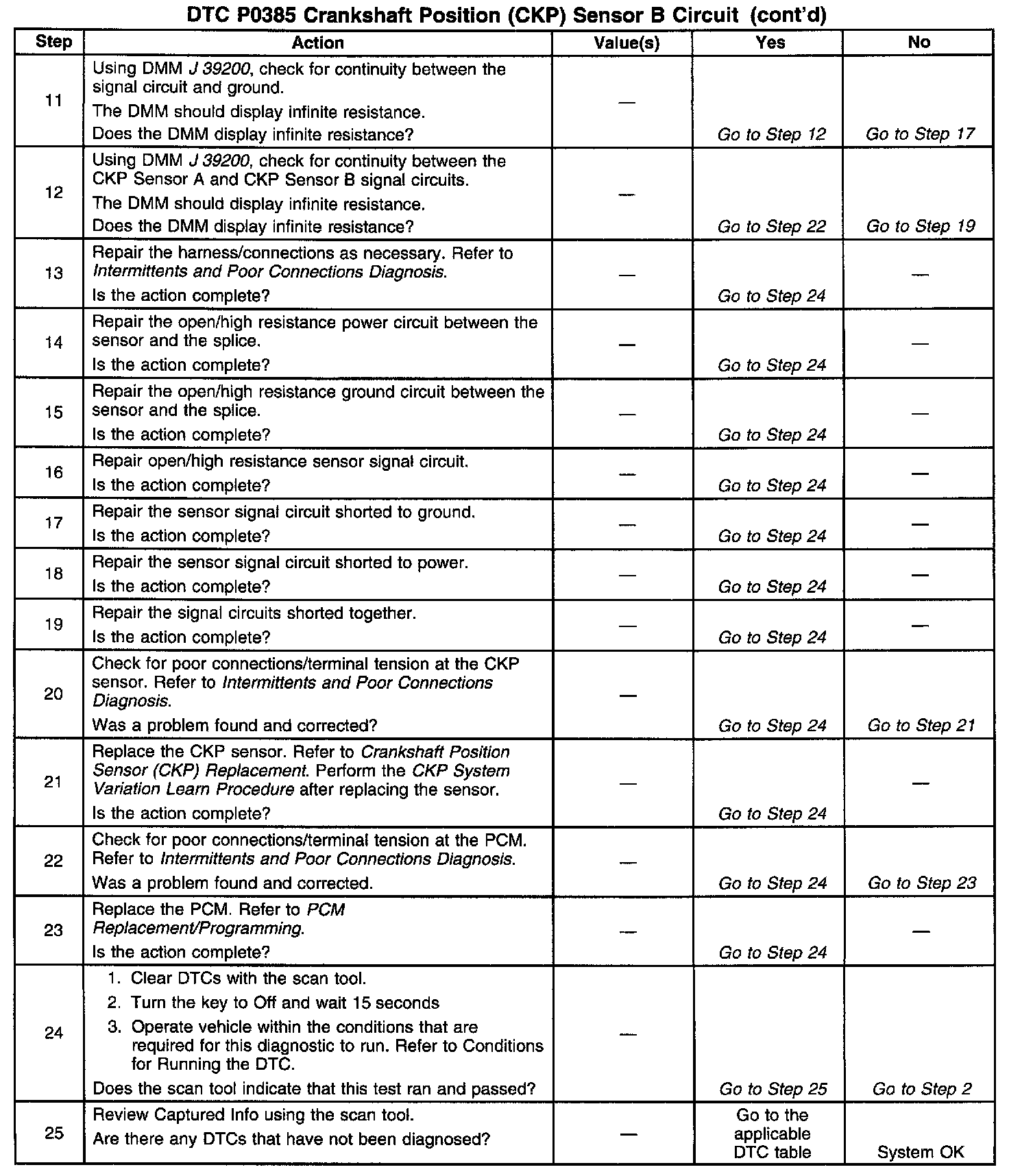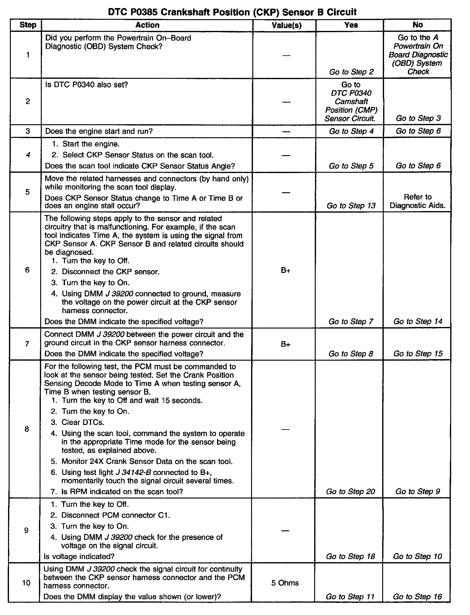 CKP/CMP sensor DTCs may set if the key is turned to Start and the starter is inoperative. If P0335, P0340, and P0385 are set and no trouble is found, check for the following: