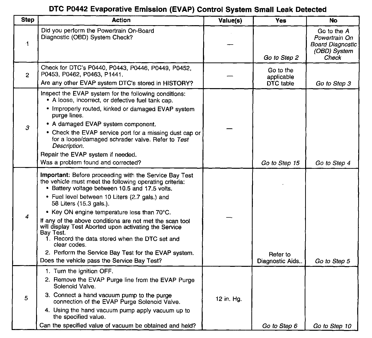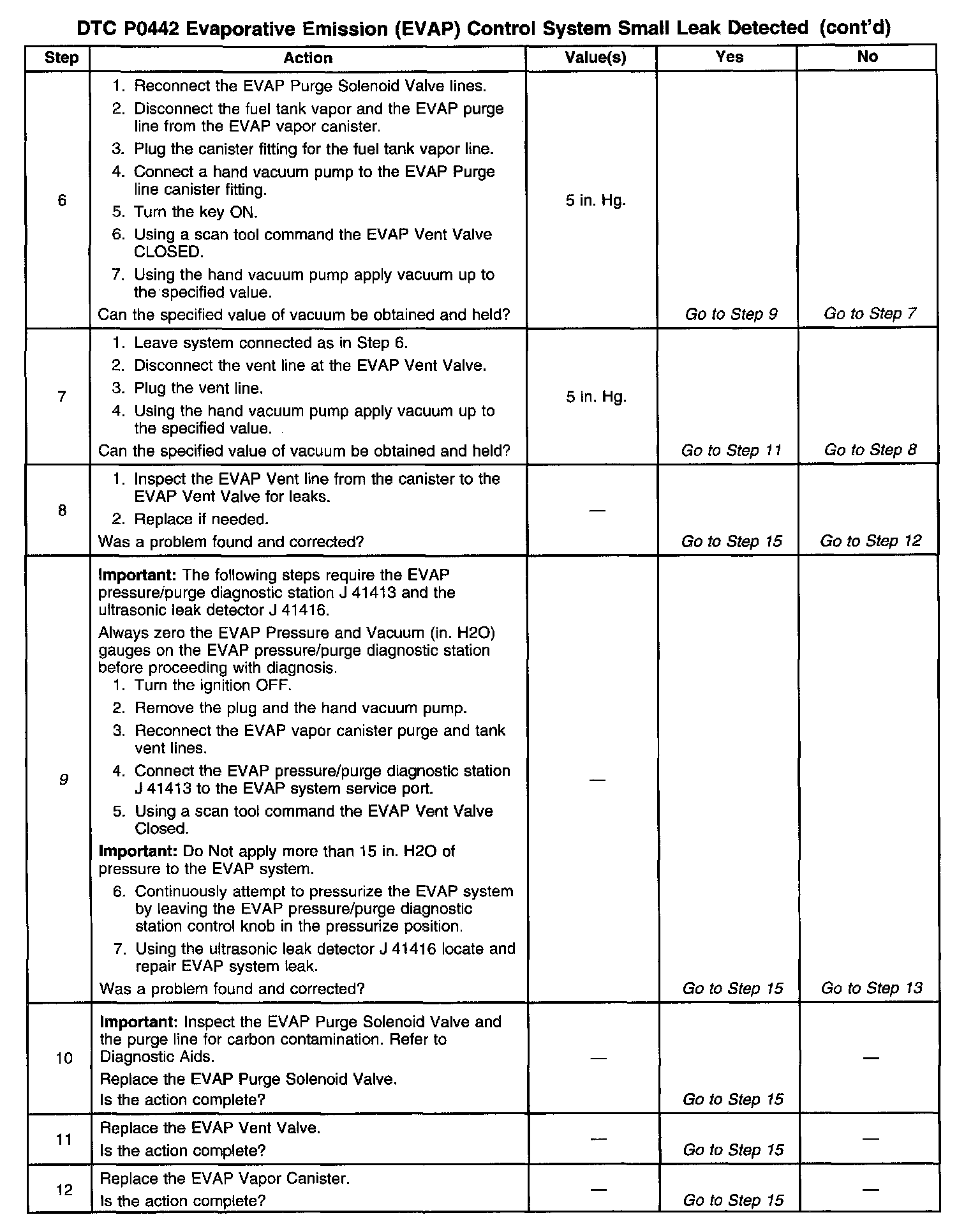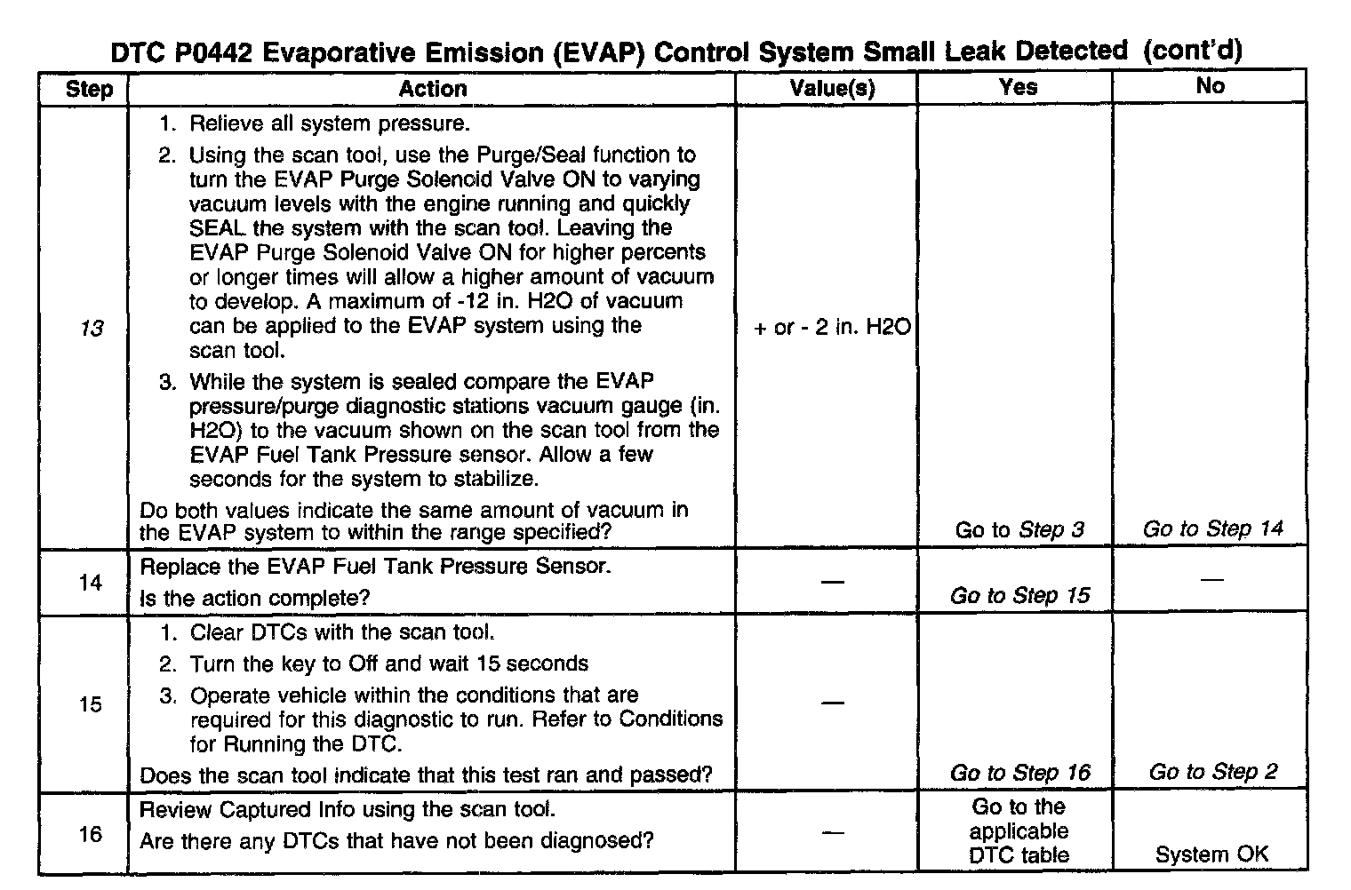 Important: An accurate indication of fuel level is required for the PCM to properly Pass or Fail this DTC. Always diagnose fuel level sensor DTC's before performing this DTC's diagnostic table. Always check for fuel level sensor DTC's stored as History.