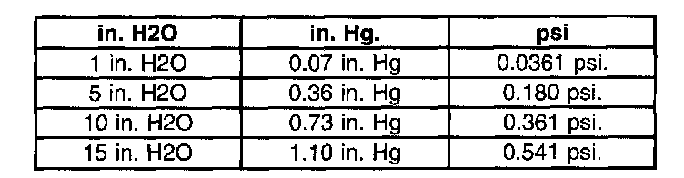 pressure in psi (pounds per square inch). The following shows how the values compare: