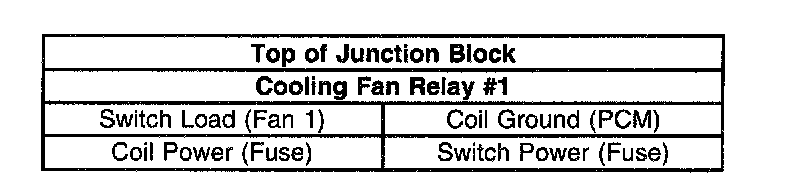 Use the following relay cavity table in order to locate the correct cavities to probe during diagnosis. The table layout corresponds to the cavity layout in the Underhood Accessory Wiring Junction Block. Four blade relays can be inserted two ways. Use the table and NOT the numbering on the relay to avoid probing incorrectly.