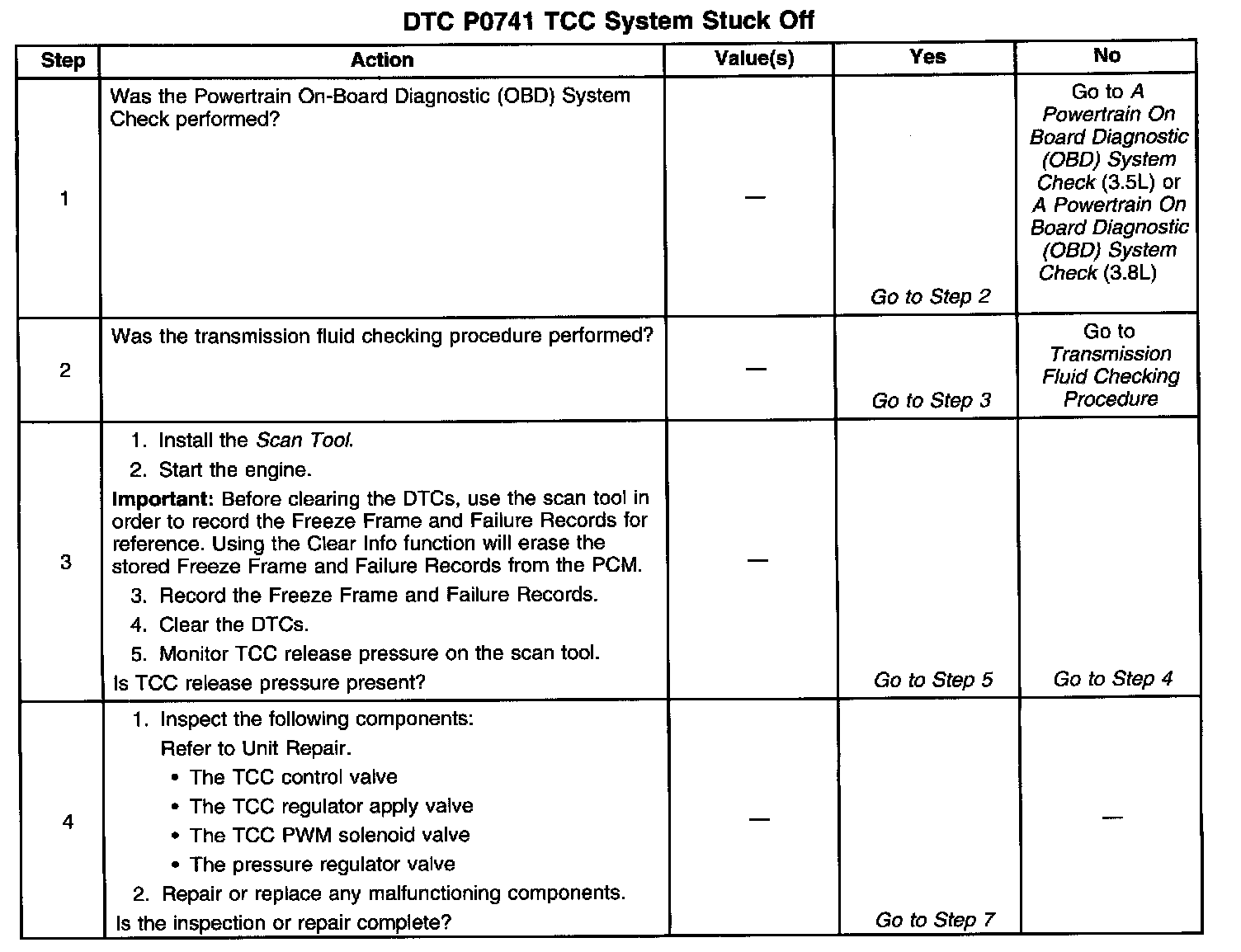 If the PCM detects high torque converter slip when the TCC is commanded ON, then DTC P0741 sets. DTC P0741 is a Type B DTC.