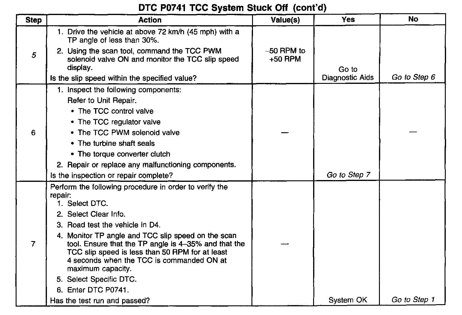5. This step verifies that the TCC engages when commanded ON by the scan tool.