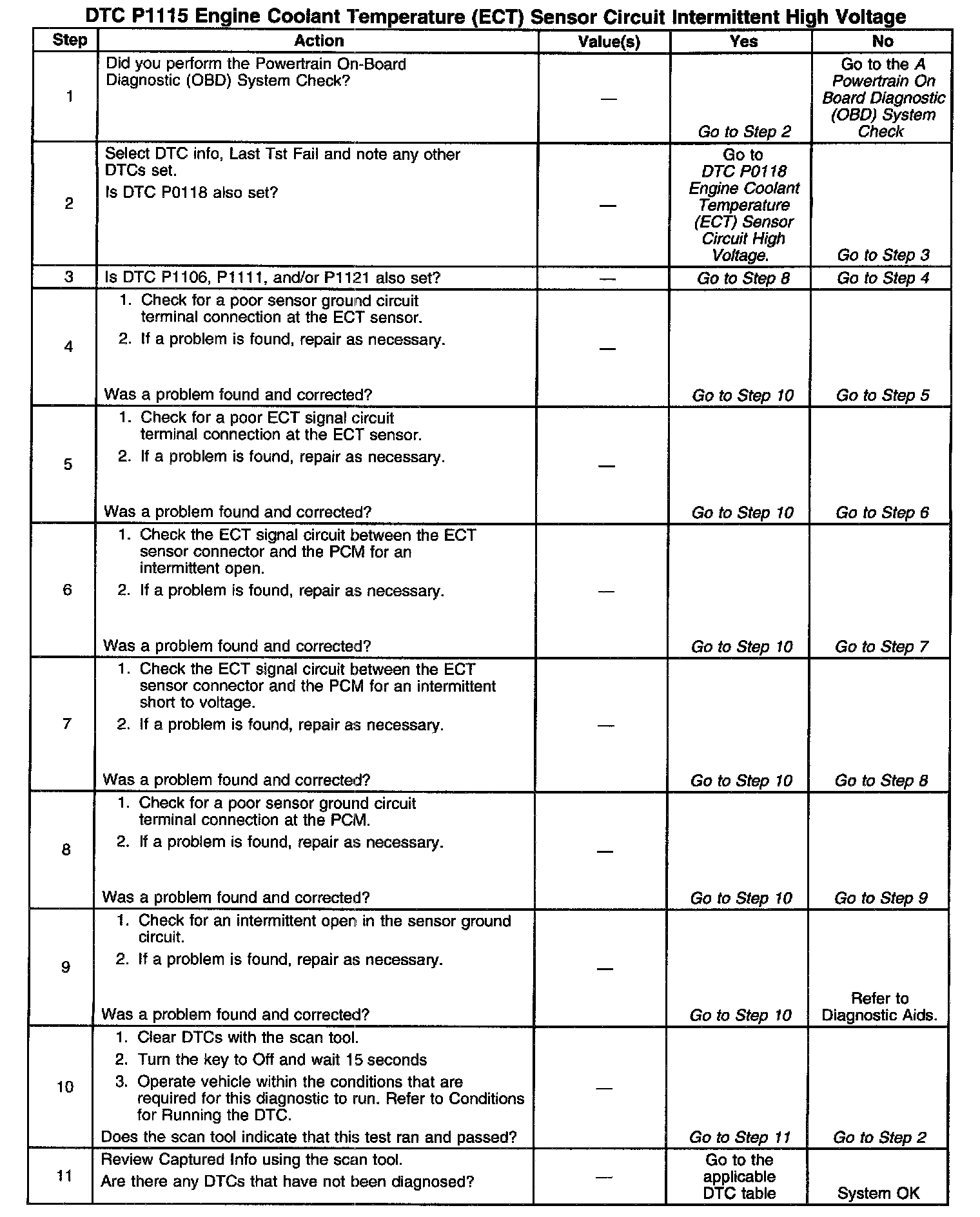 Inspect the wiring harness for damage. If the harness appears to be OK, observe the ECT display on the scan tool while moving connectors and wiring harnesses related to the ECT sensor. A change in the ECT display will indicate the location of the malfunction.