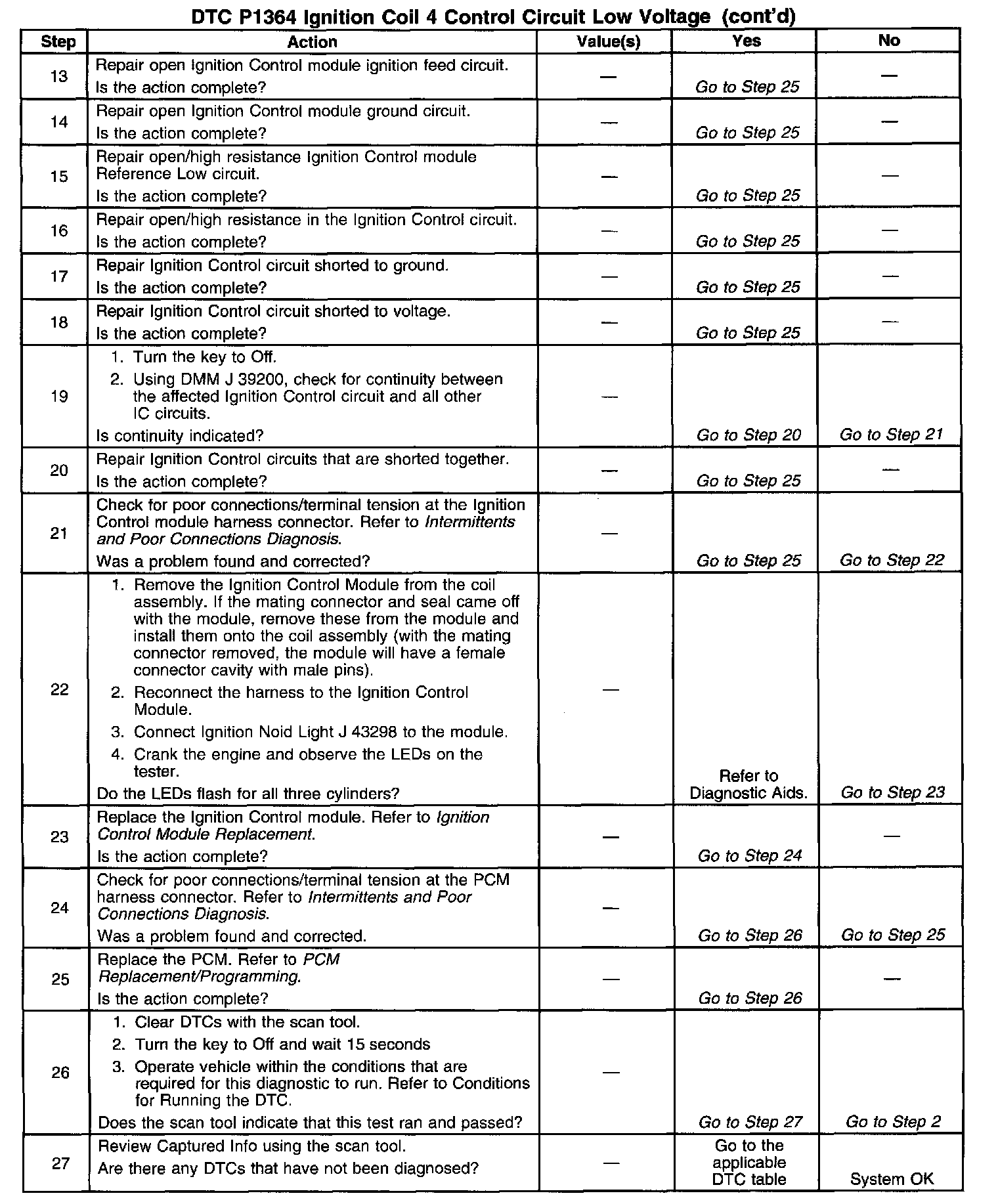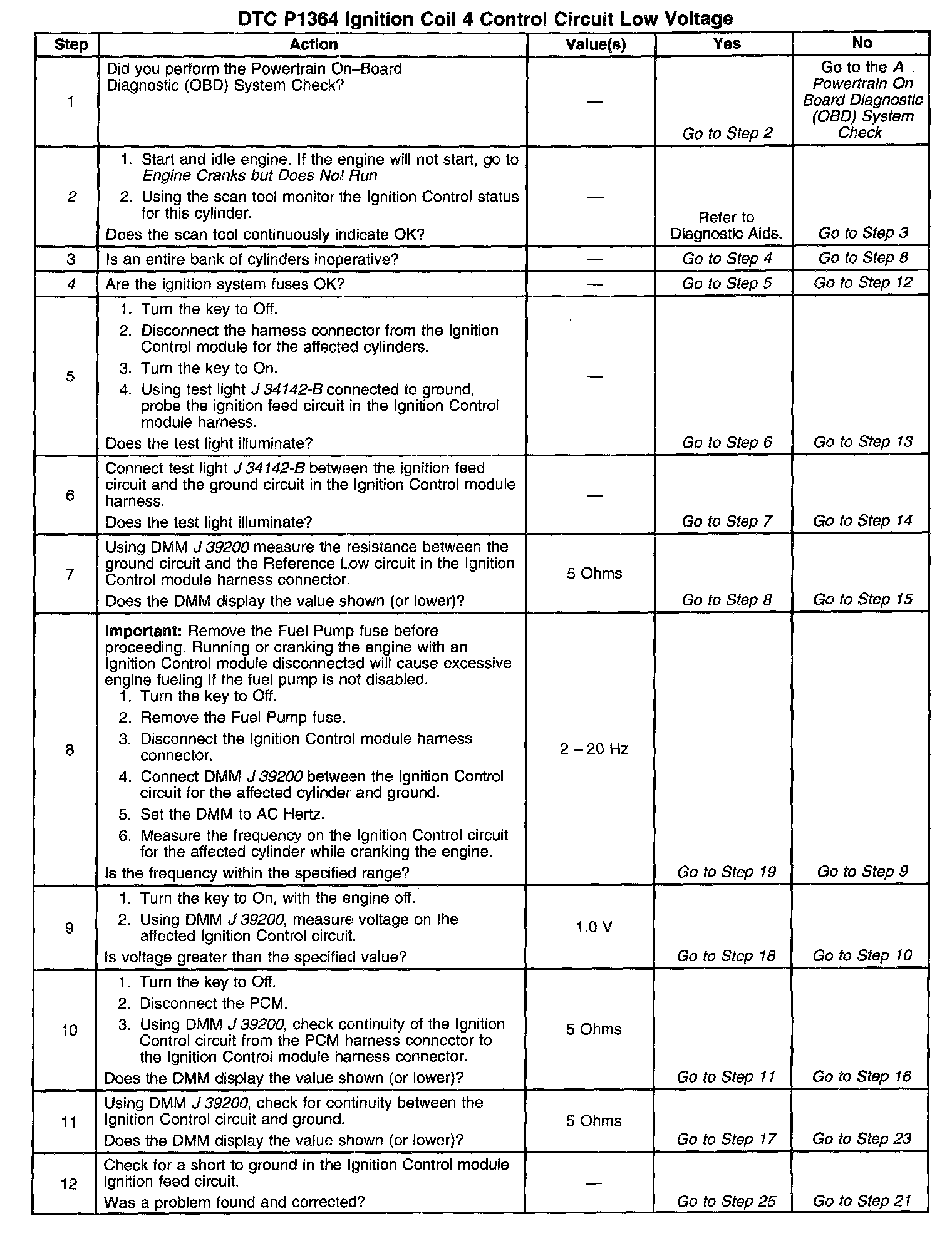 Number(s) below refer to the step number(s) on the diagnostic table.