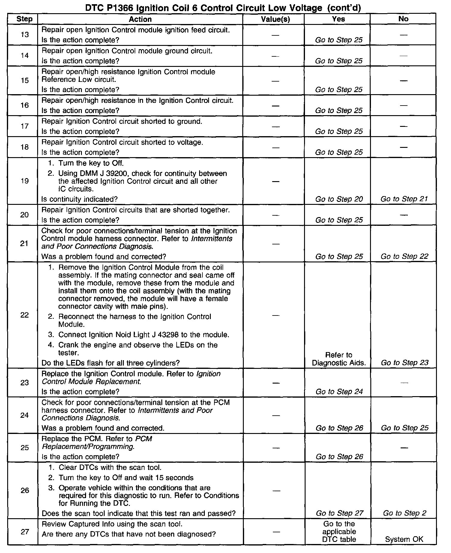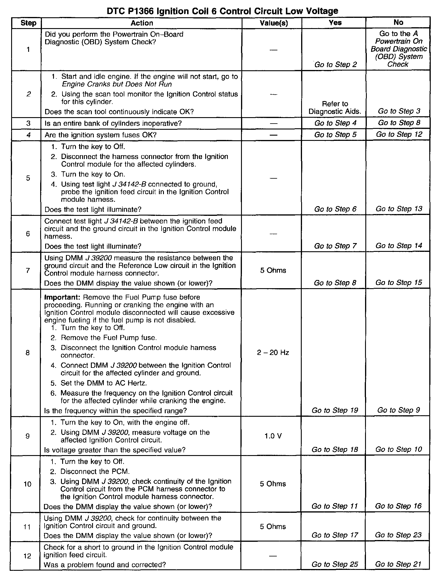 Number(s) below refer to the step number(s) on the diagnostic table.
