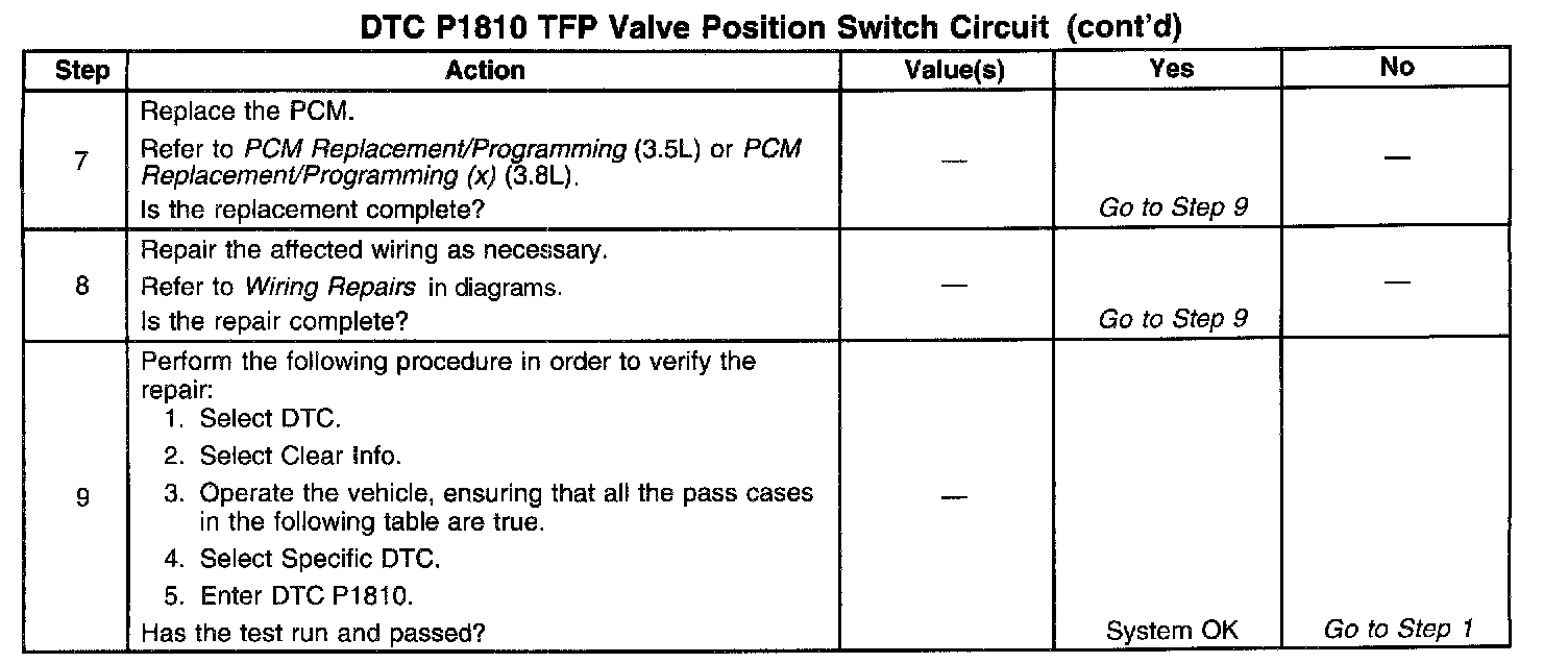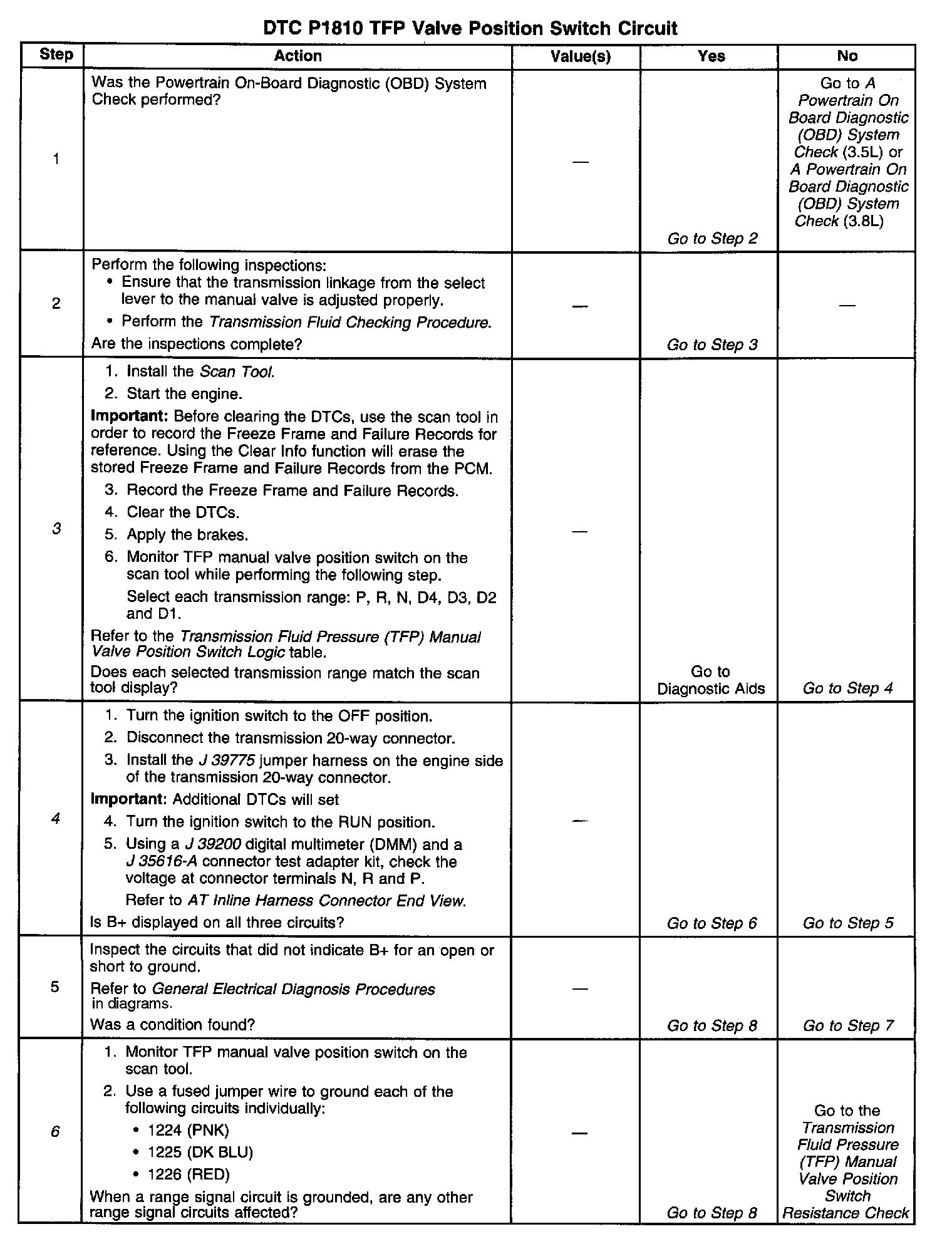 If the PCM detects an illegal combination on any range inputs (ON/OFF/ON or ON/ON/ON), then DTC P1810 sets. If the PCM detects a gear range Other than the one indicated, then DTC P1810 sets. DTC P1810 is a Type B DTC.