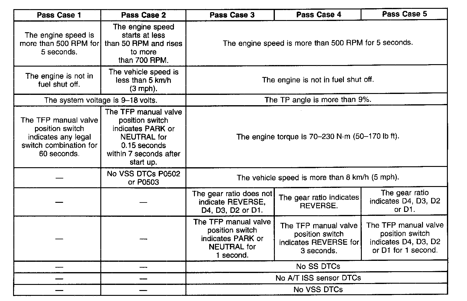 ^ No A/T ISS sensor DTCs P0716 or P0717 are set.