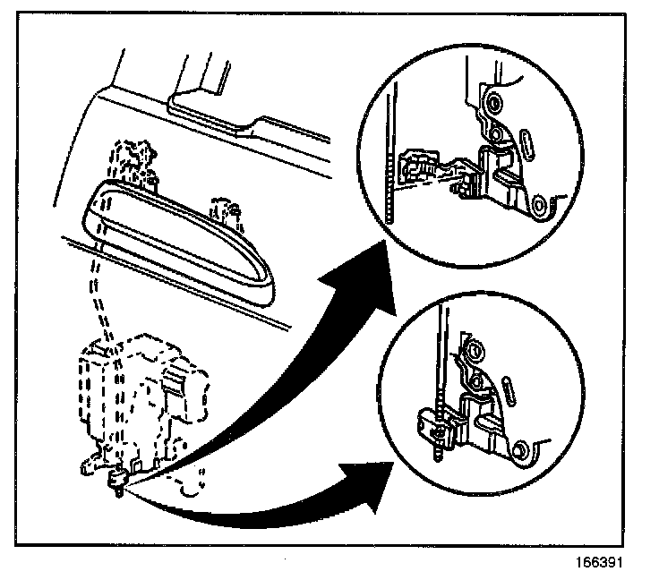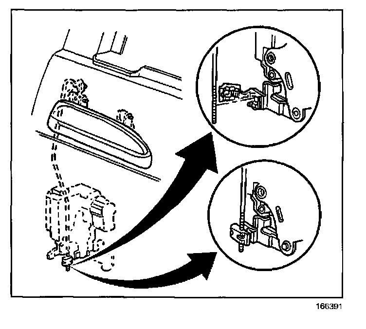 8. Position the outside handle rod in the new clip eliminating the free play from the handle.