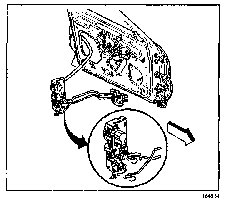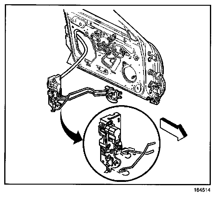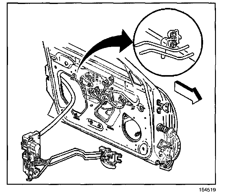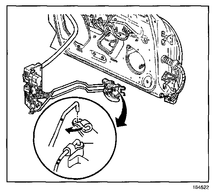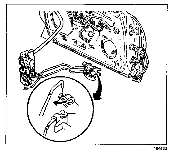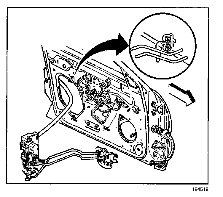 9. Remove the rear door lock with the inside handle rods attached.