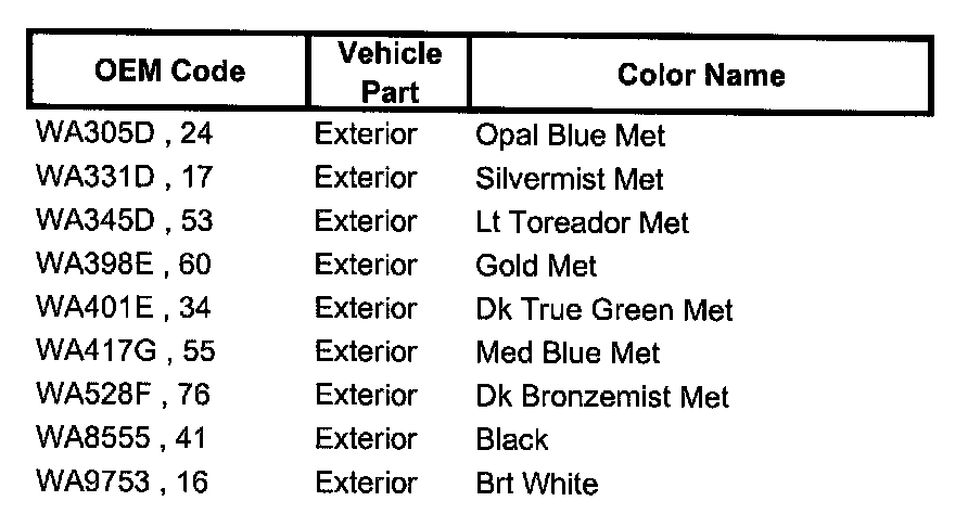 Paint Code Charts