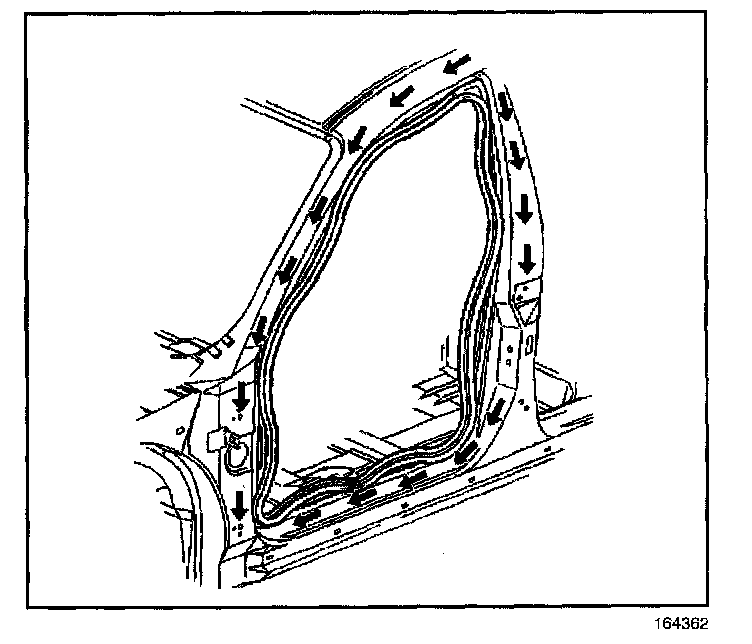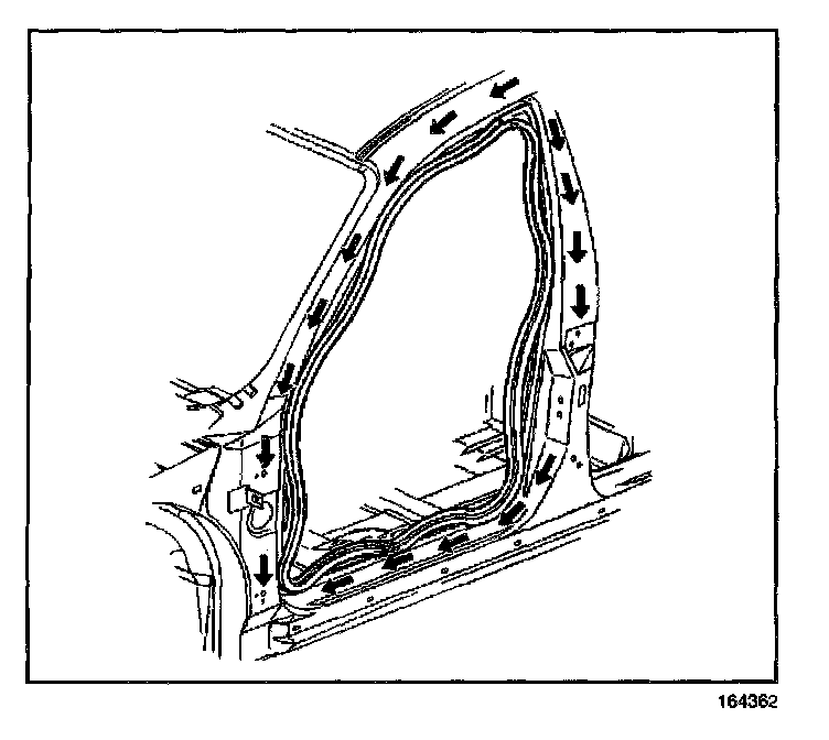 1. Install the weatherstrip to the pinchweld flange.