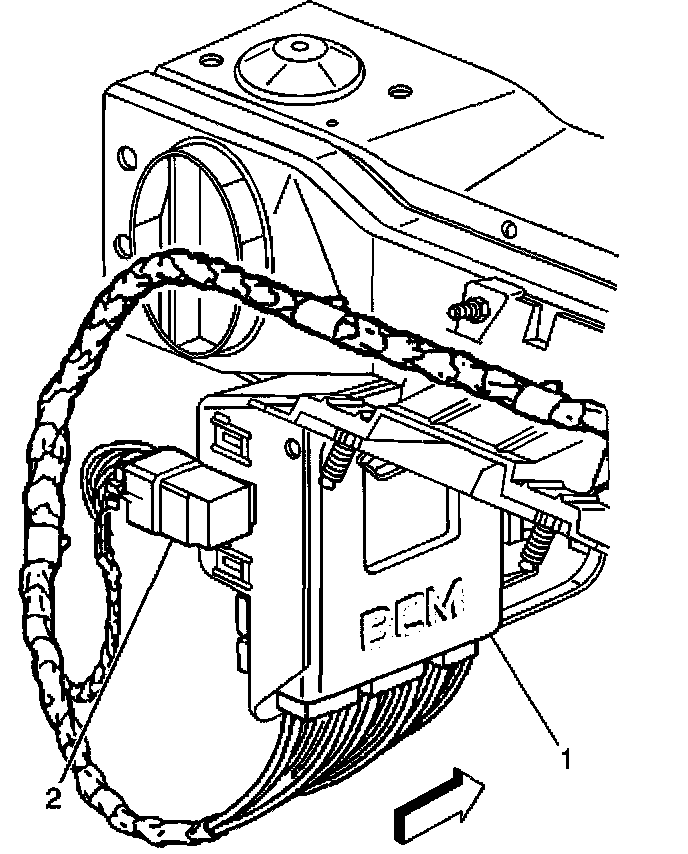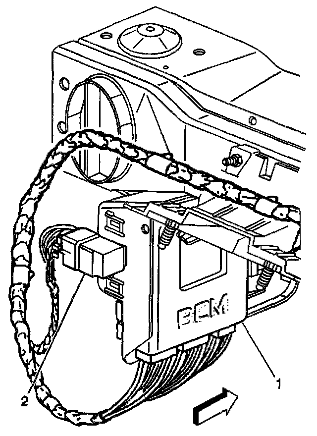 2. Use pressure tabs in order to release the EBTCM (1) from the EBTCM bracket (2).