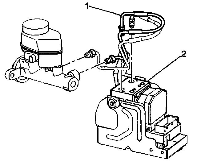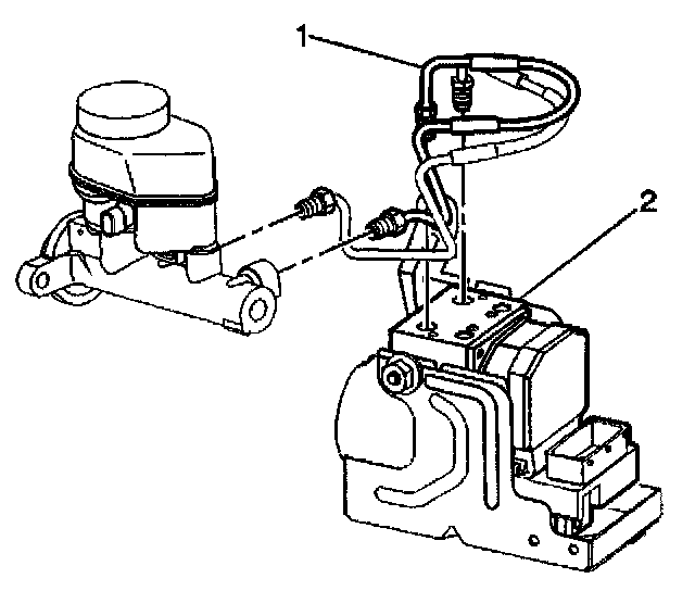 4. Install the master cylinder brake pipes (1) on the BPMV (2).