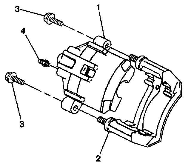 13. Inspect the caliper bolts (1) for corrosion or damage. If corrosion is found, use new parts, including bushings, when installing the caliper. Do not attempt to polish away corrosion.