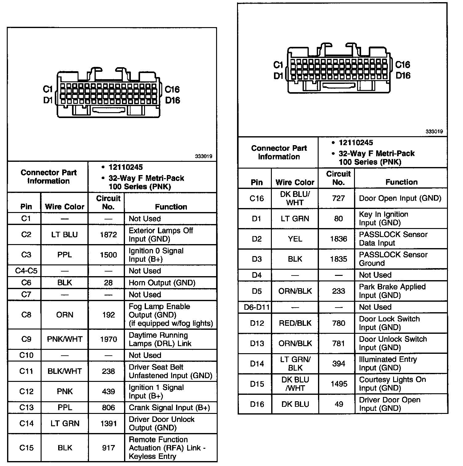 Body Control Module (BCM) Connector C1: