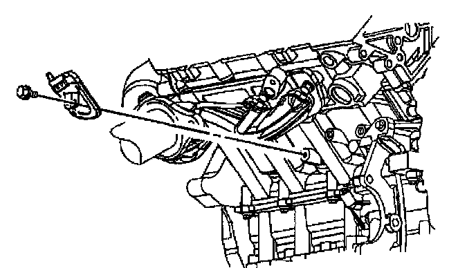 Important: Align the threaded hole in the engine block with the hole labeled R (1) on the right (rear) coolant heater.