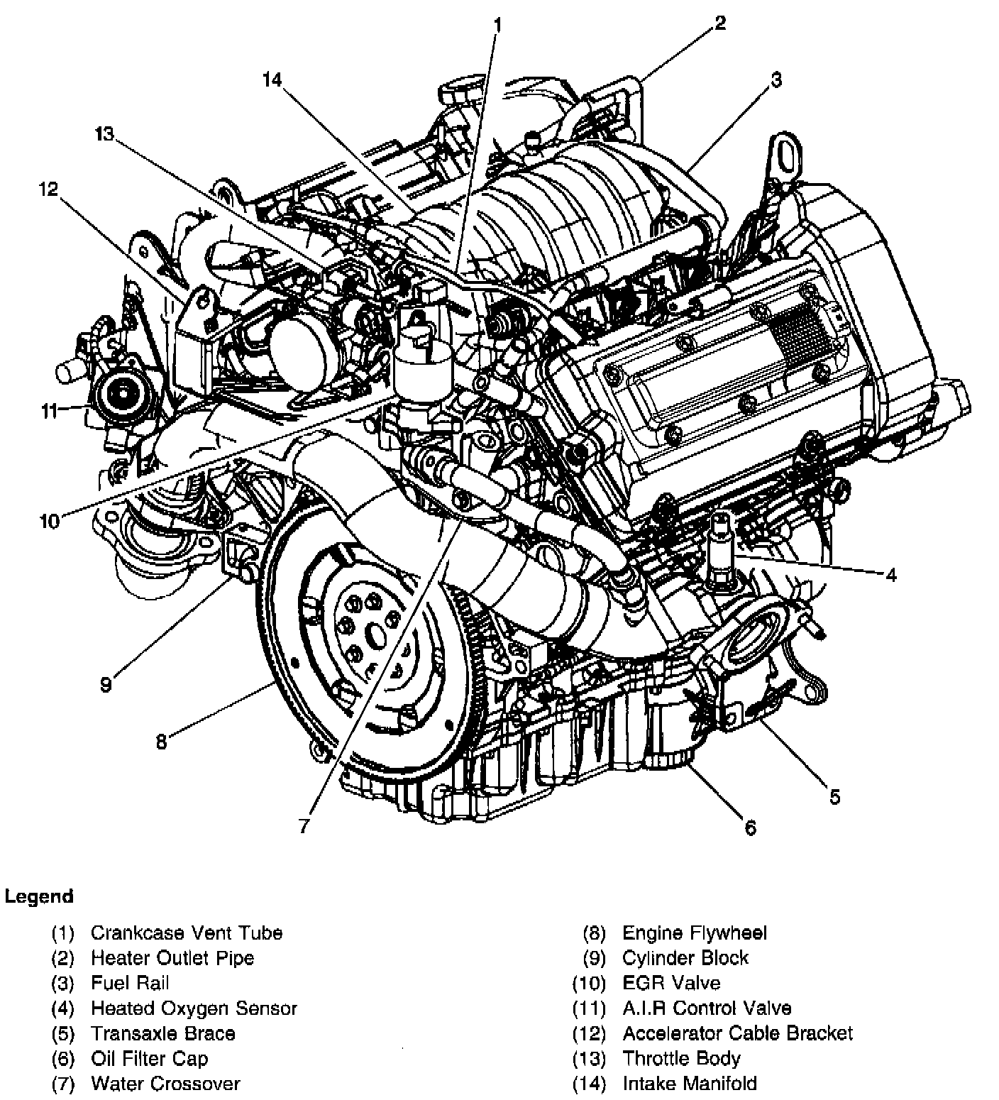 The coolant pump is bolted to the engine front cover and is driven by the serpentine belt via a drive pulley. The water crossover distributes coolant to the cylinder block and collects it from the cylinder head for delivery to the radiator, The water crossover also provides important functions for the EGR System. The coolant pump and its housing form an assembly which is inseparable and serviced as one unit.