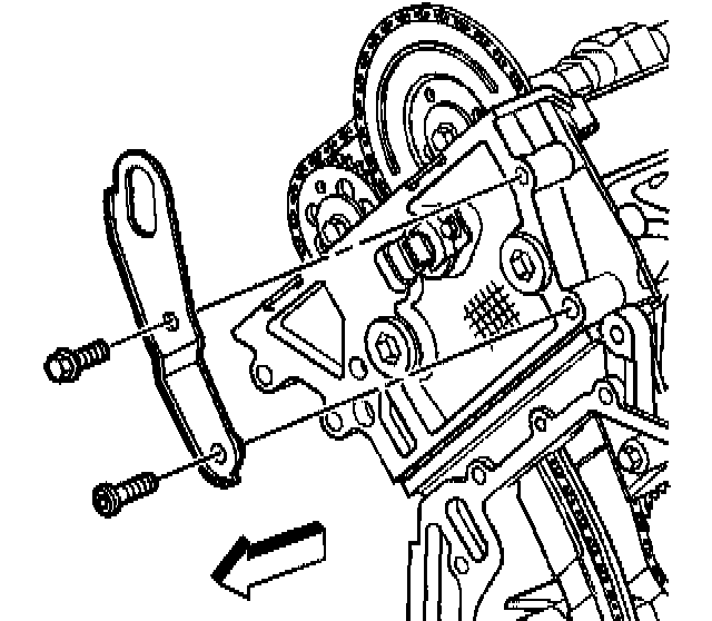 14. Remove the primary timing chain tensioner shoe retaining bolt.