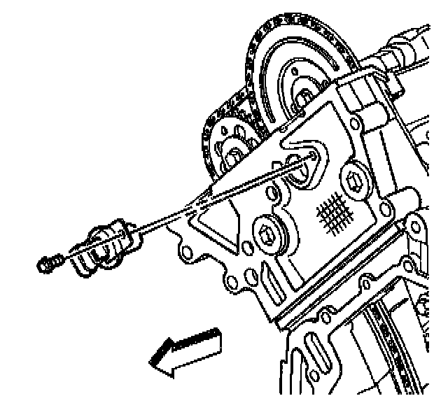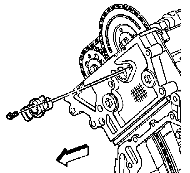 11. Install the primary timing chain tensioner shoe retaining bolt using the access hole in the cylinder head.