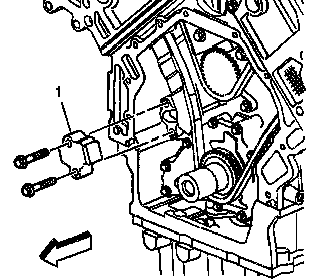 15. Install the primary timing chain tensioner (1) and the retaining bolts.