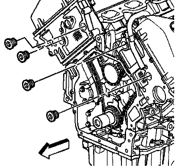 9. Remove the four chain guide access plugs located in the cylinder heads. Note the O-ring seal on each access plug.