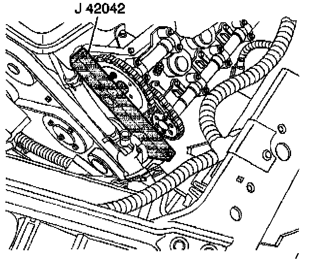 3. Remove the J 42042 from the left (front) cylinder head.