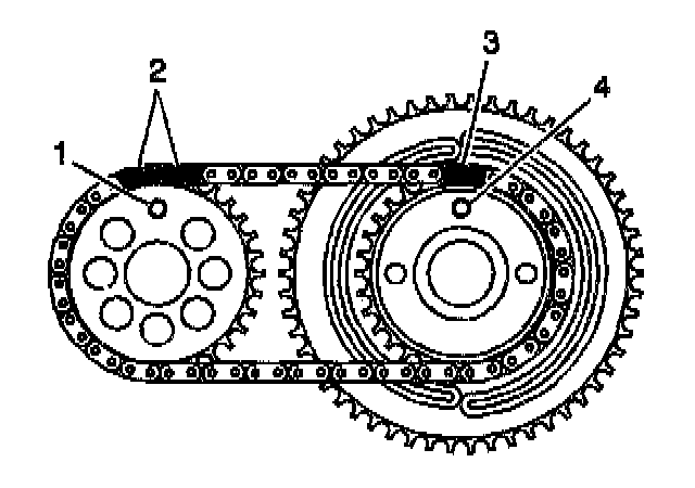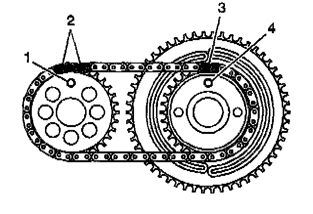 Align the intake sprocket drive pin (4) with the single darkened link (3).