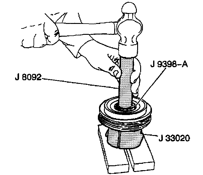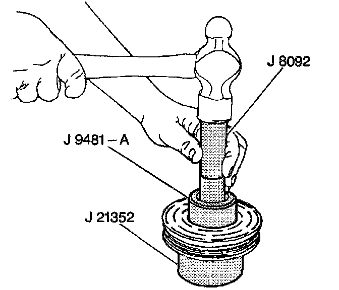 1. Place the pulley rotor on the J 21352-A in order to fully support the rotor hub during the bearing installation.