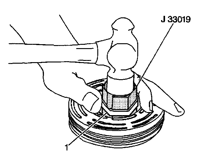 7. Using care in order to prevent injury, strike the staking pin of the J 33019. Properly position the stake pin in the guide after each impact on the pin.