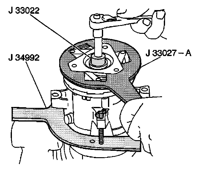 10. Tighten the hex portion of the body of the J 33013-B in order to press the hub onto the shaft.