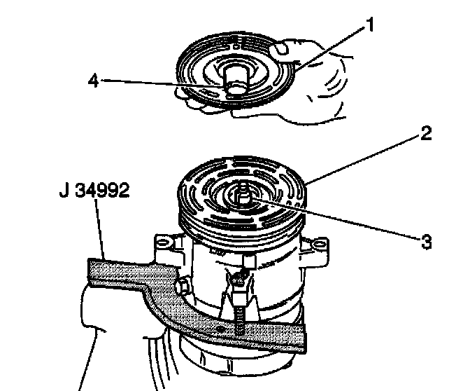 4. Place the clutch plate and hub assembly onto the compressor shaft.